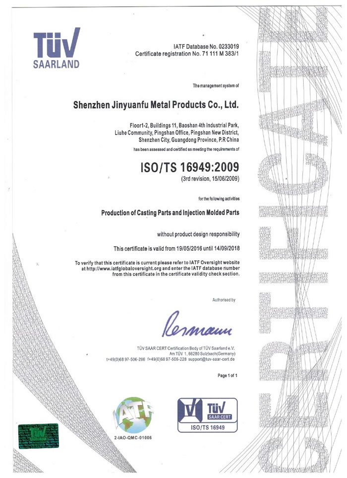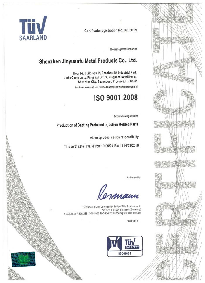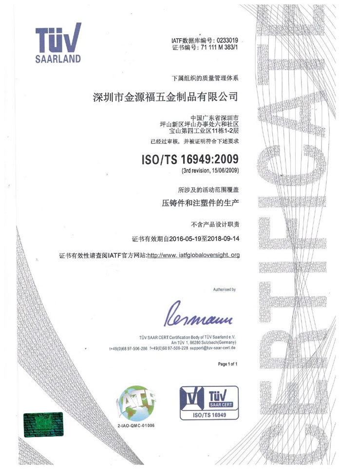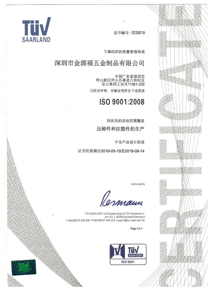 深圳市金源福五金制品有限公司成立于2003年。公司擁有8000多平方米生產(chǎn)廠地、開發(fā)與管理精英人才、技術專業(yè)、設備精良、交通便利、服務周全、具體設計、開發(fā)、制模、出樣、生產(chǎn)到成品出貨一體化模式生產(chǎn)廠家。已通過ISO9001:2008ISO1440/TS16949:2009國際質量體系認證。專業(yè)生產(chǎn)鋅合金壓鑄、鋁合金壓鑄產(chǎn)品、汽車配件、汽車后視鏡支架、車載導航散熱器、LED散熱器、LED燈罩、數(shù)碼電子五金結構件、家具五金裝飾件、標牌(LOGO)等五金壓鑄產(chǎn)品。